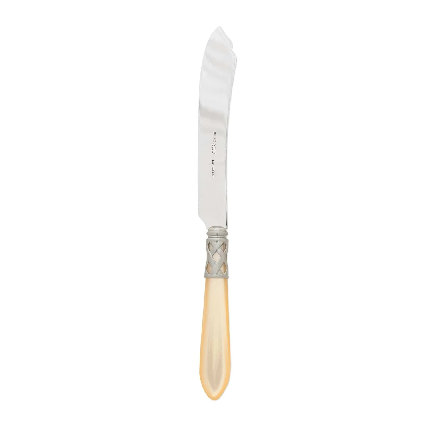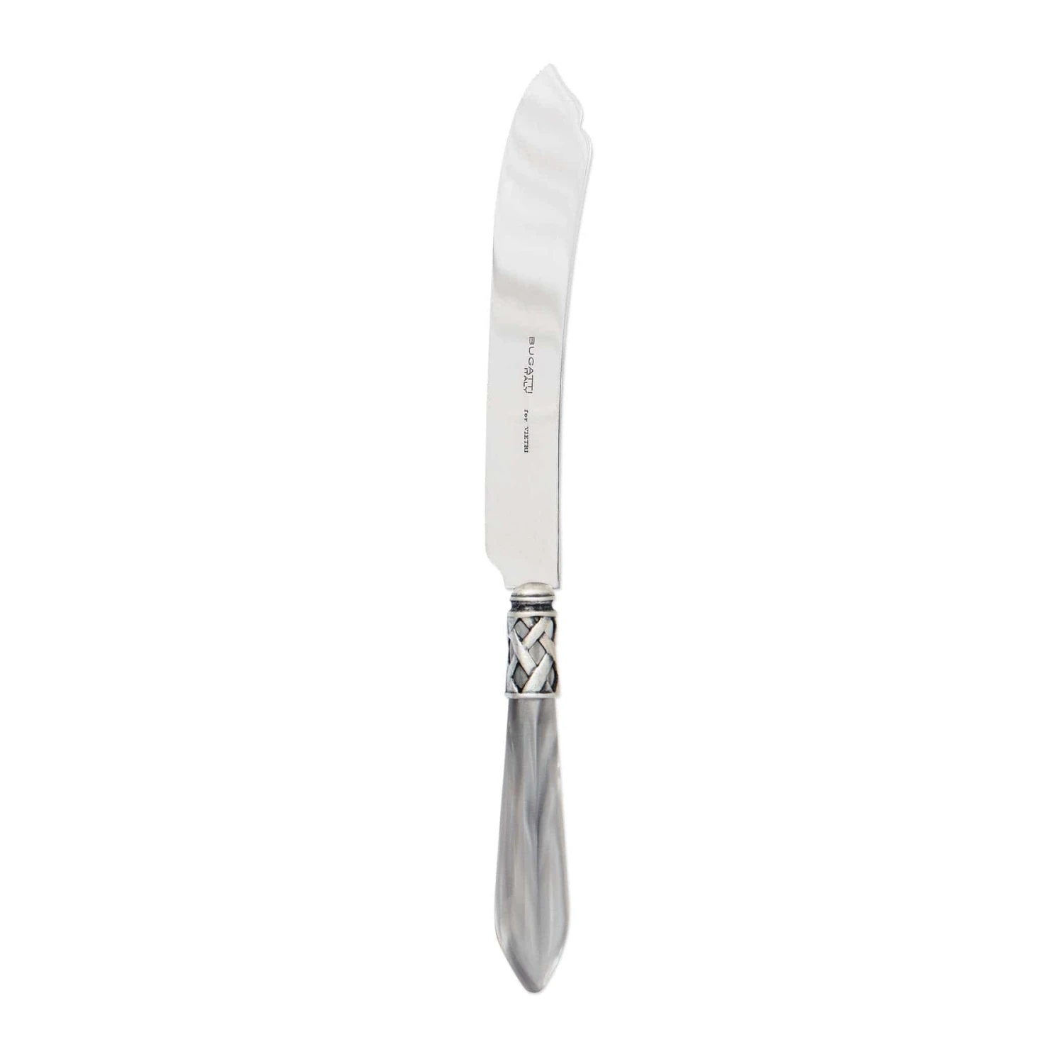 The Aladdin Antique Cake Knife features elegant pearlized handles with the strength of high-grade acrylic and 18/10 stainless steel. This piece is also available in our brilliant finish.