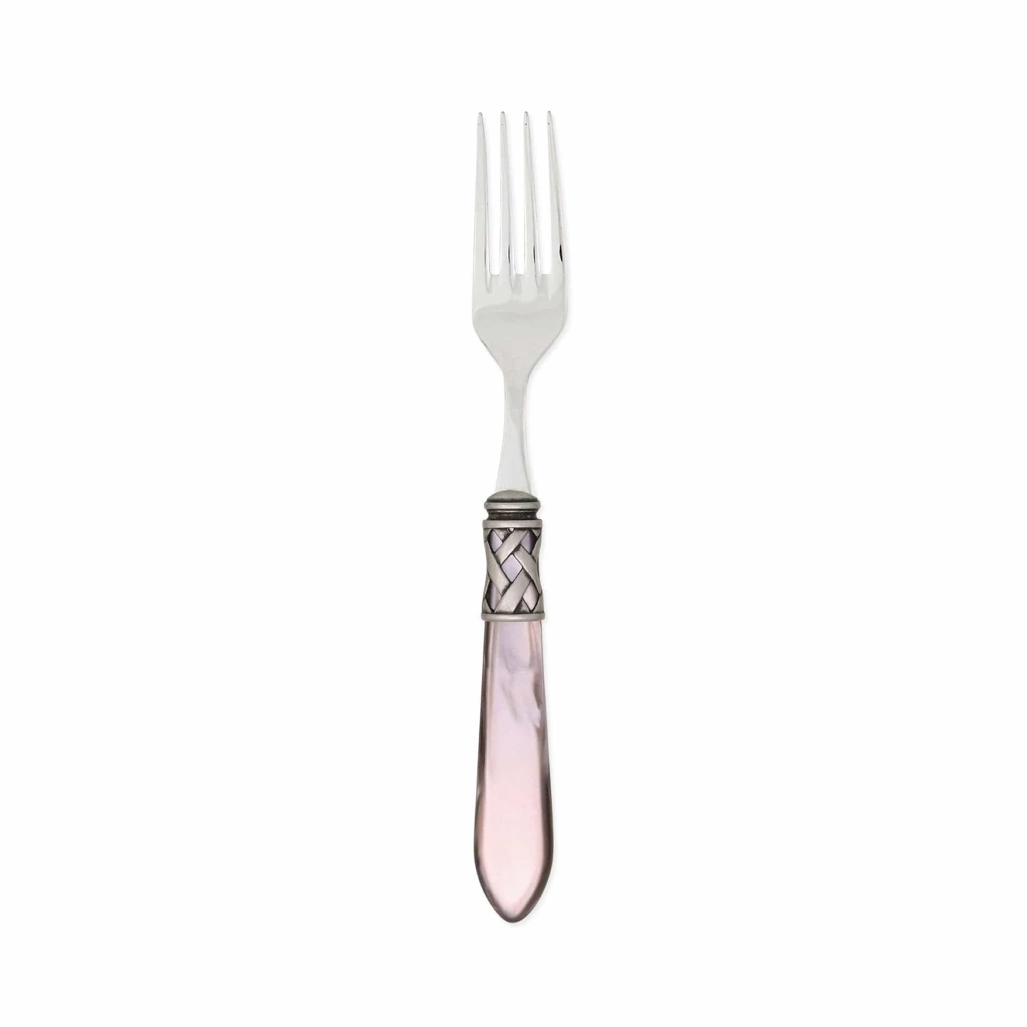 The Aladdin Antique Place Fork features elegant pearlized handles with the strength of high-grade acrylic and 18/10 stainless steel. This piece is also available in our brilliant finish.