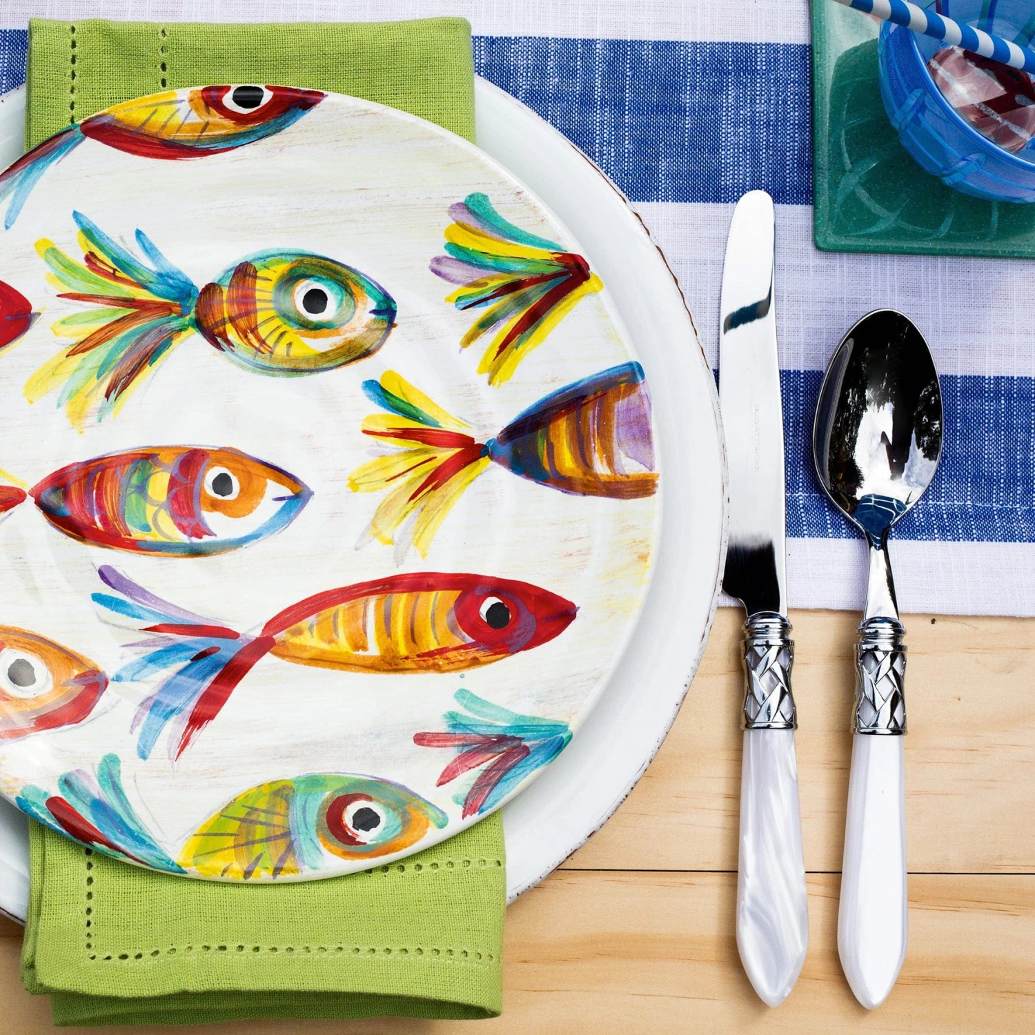 The Aladdin Antique Place Knife features elegant pearlized handles with the strength of high-grade acrylic and 18/10 stainless steel. This piece is also available in our brilliant finish.