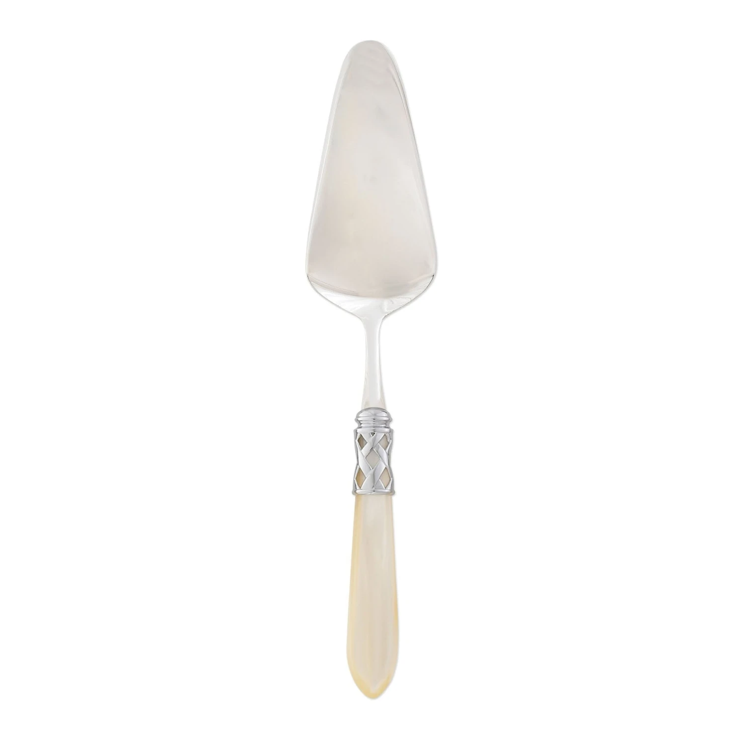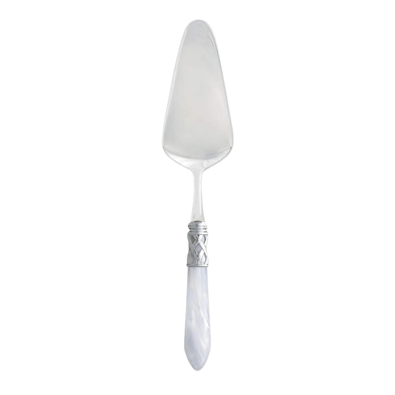 The Aladdin Brilliant Pastry Server features elegant pearlized handles with the strength of high-grade acrylic and 18/10 stainless steel. This piece is also available in our antique finish.