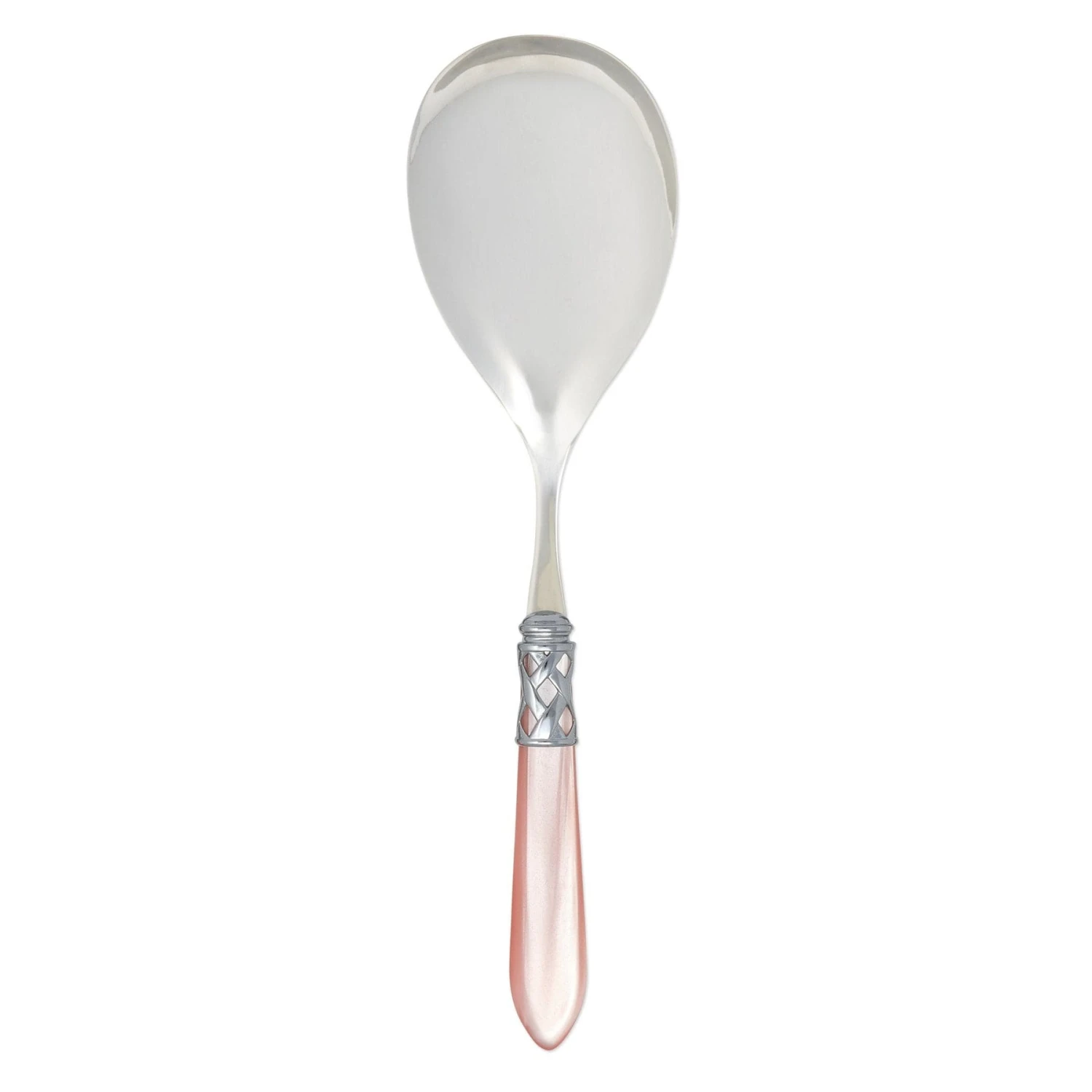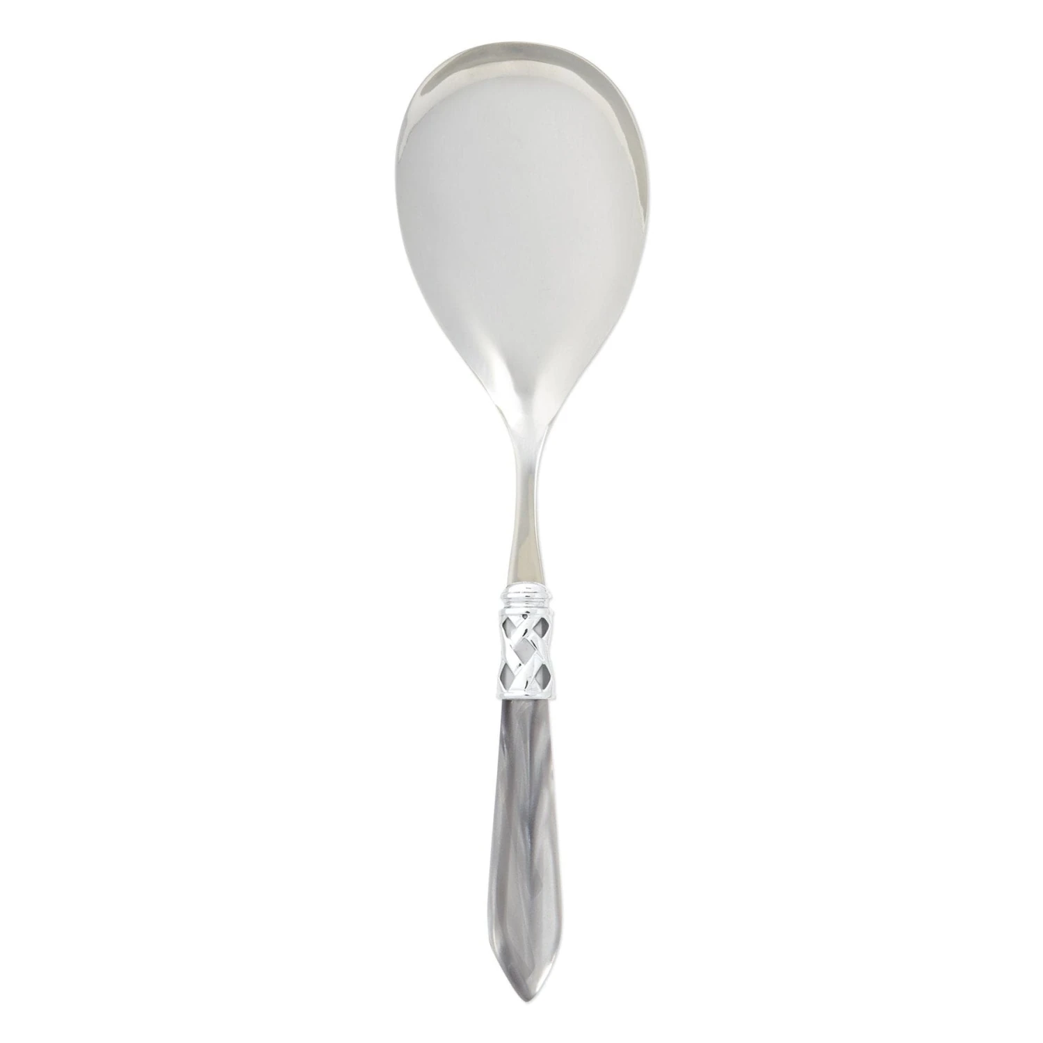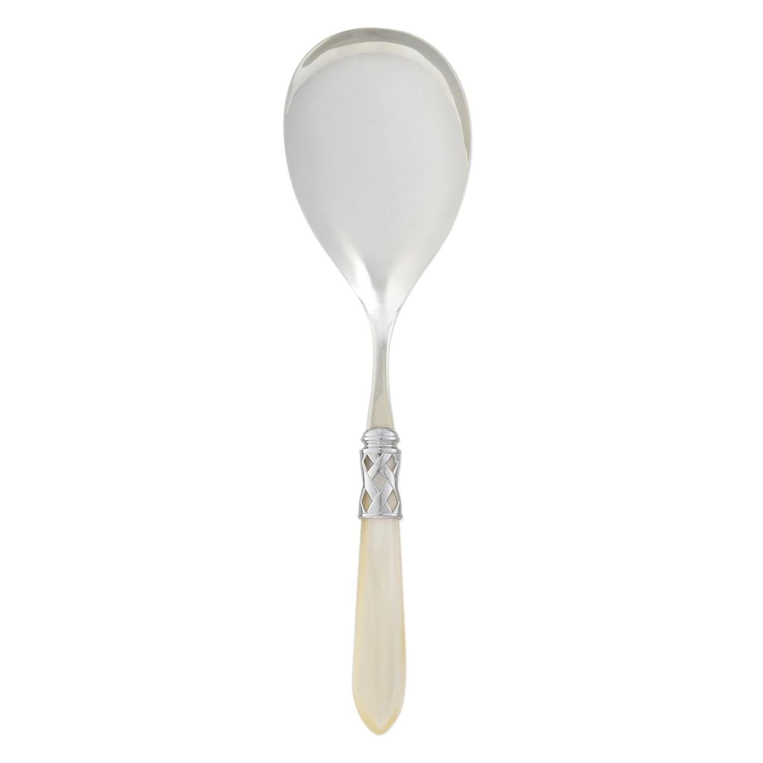 The Aladdin Brilliant Serving Spoon features elegant pearlized handles with the strength of high-grade acrylic and 18/10 stainless steel. This piece is also available in our antique finish.