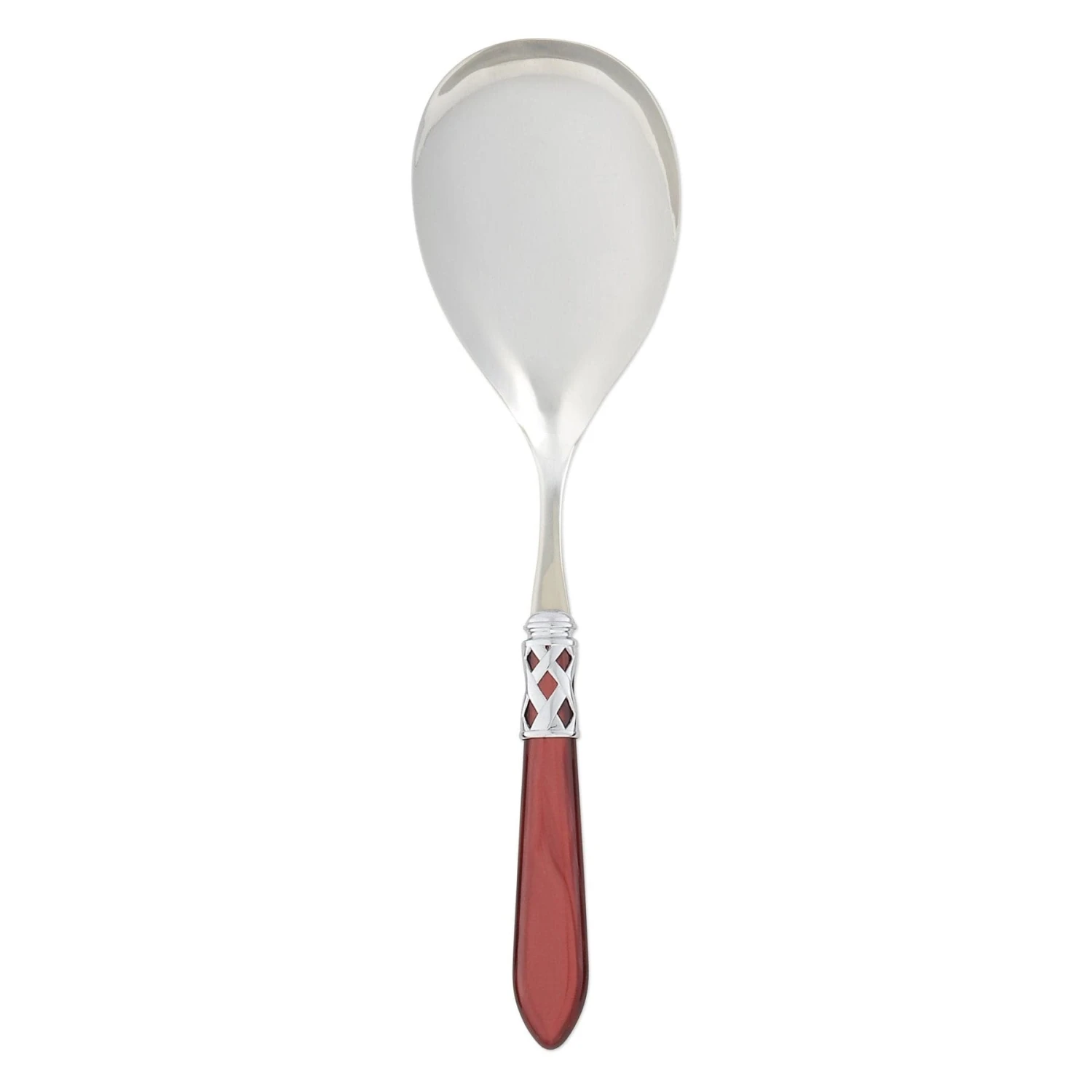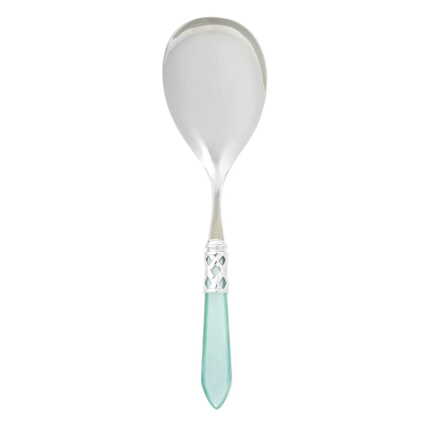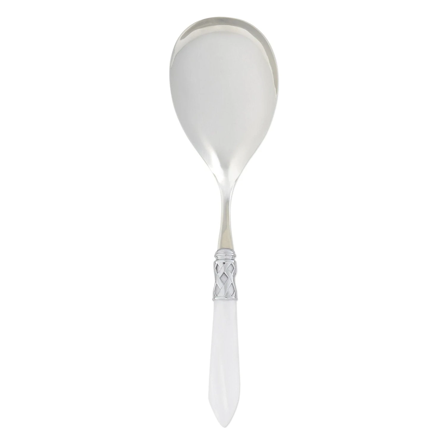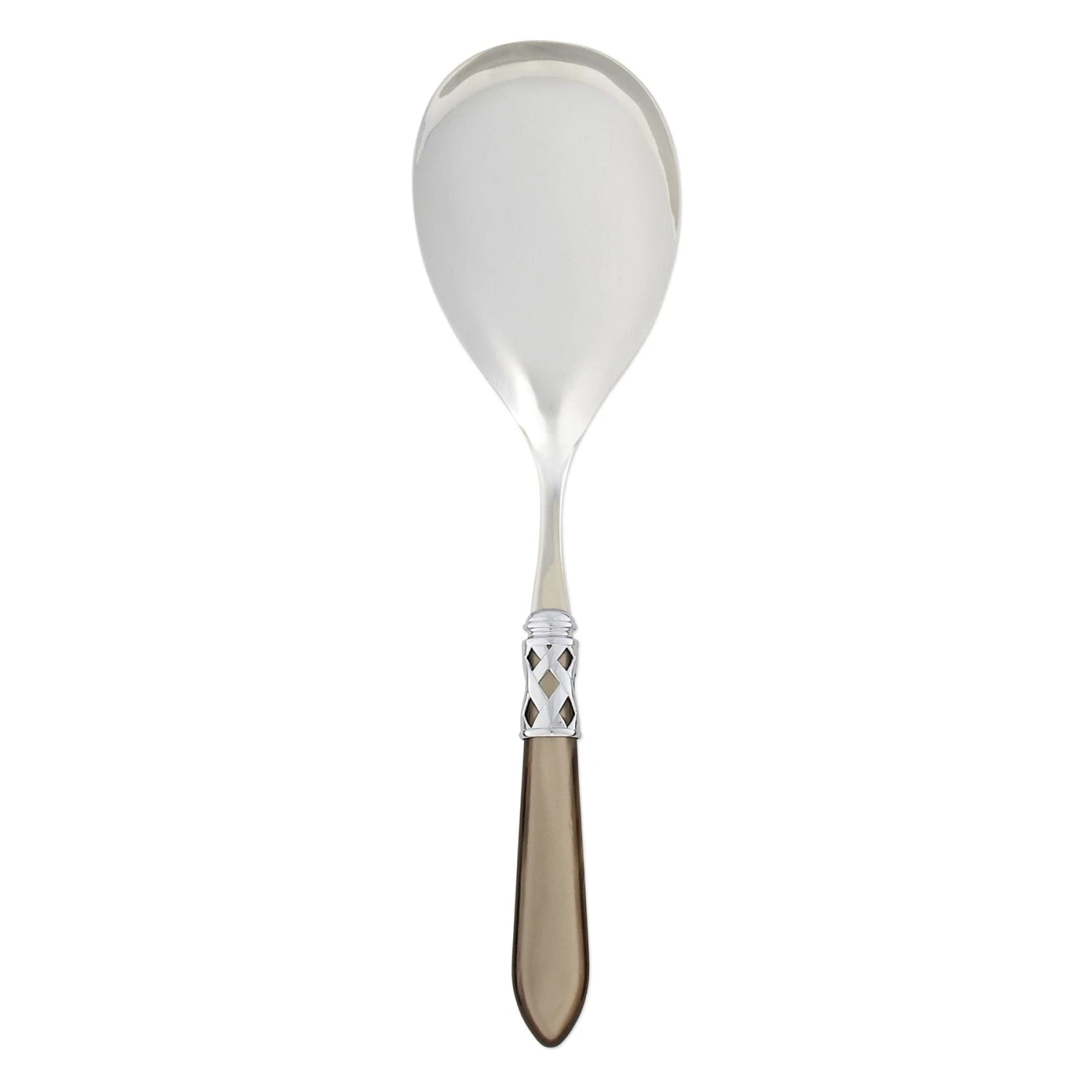The Aladdin Brilliant Serving Spoon features elegant pearlized handles with the strength of high-grade acrylic and 18/10 stainless steel. This piece is also available in our antique finish.