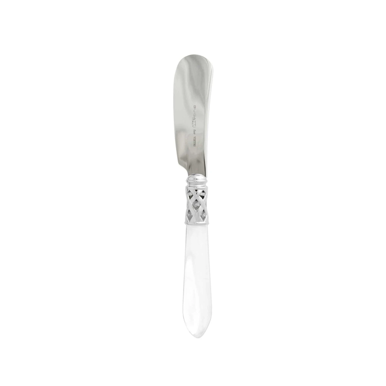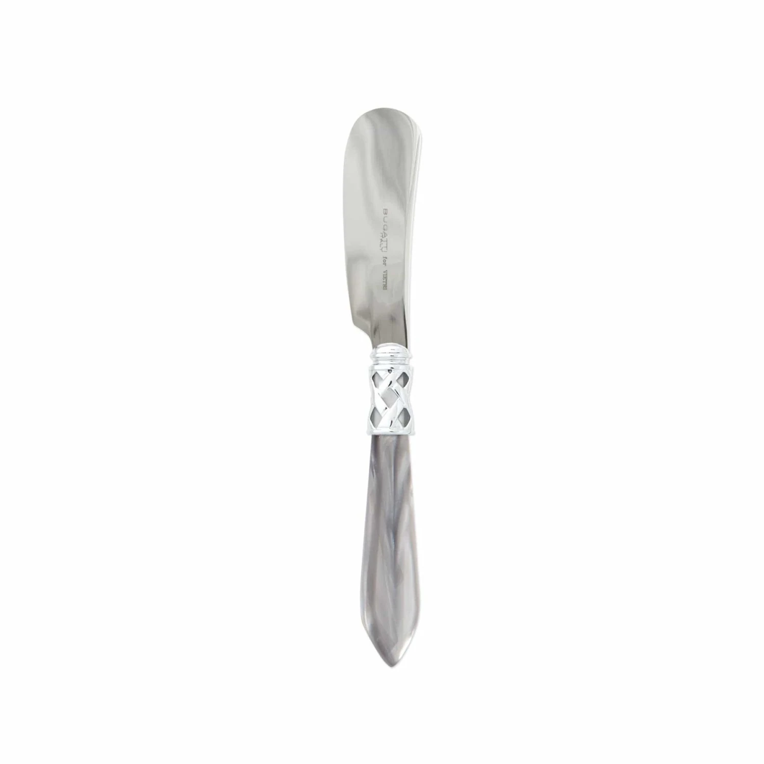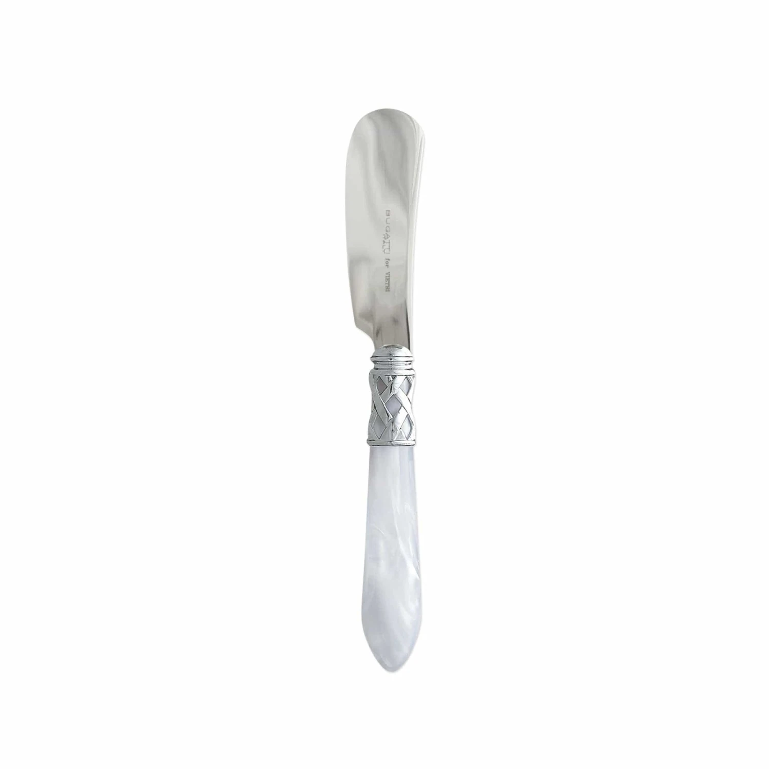 The Aladdin Brilliant Small Spreader features elegant pearlized handles with the strength of high-grade acrylic and 18/10 stainless steel. This piece is also available in our antique finish.