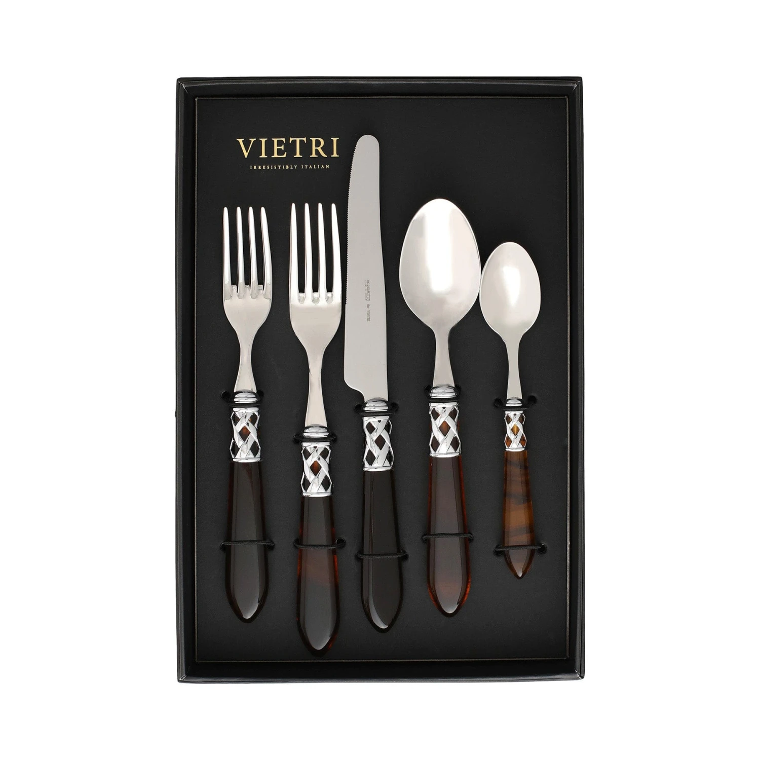 The Aladdin Brilliant Five-Piece Place Setting (Set of 4) features elegant pearlized handles with the strength of high-grade acrylic and 18/10 stainless steel. The brilliant finish on the handle has a sophisticated, updated look.