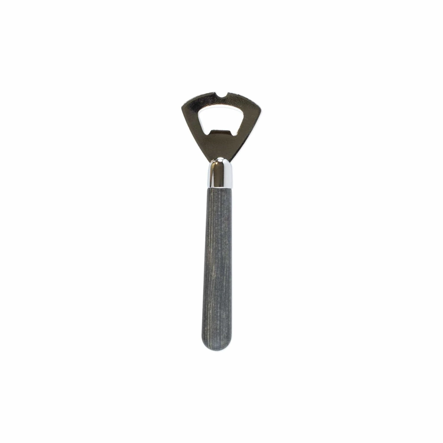 The Albero Bottle Opener in muted black features warm wood handles, with the strength of high-grade polyester and 18/10 stainless steel.