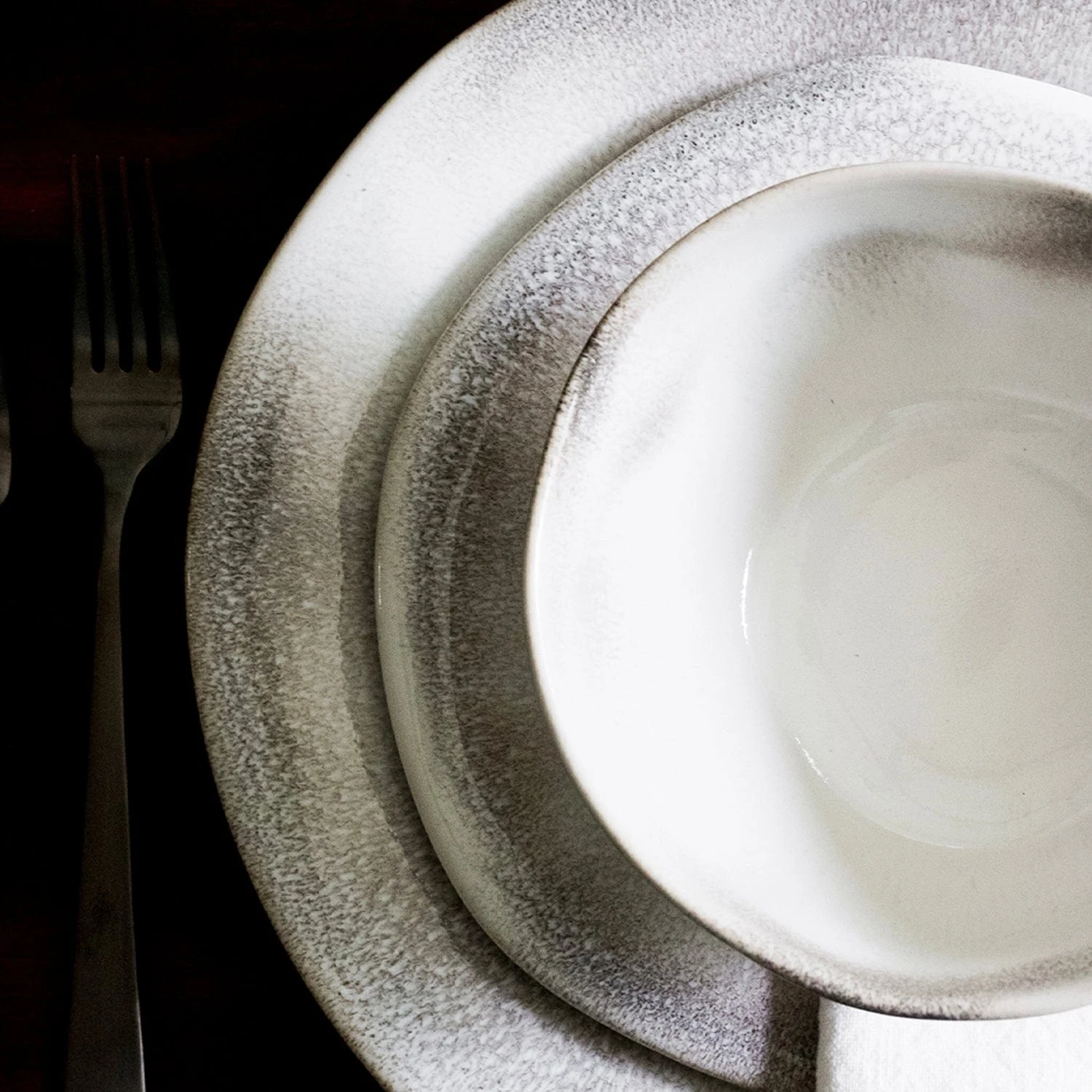 Highlighting the skill and craftsmanship of maestro artisan, Francesco Venzo, the Aurora Ash Salad Plate adds intrigue to everyday dining. Splatters of white and charcoal intermingled on durable stoneware inevitably add subtle chicness to any tablescape.