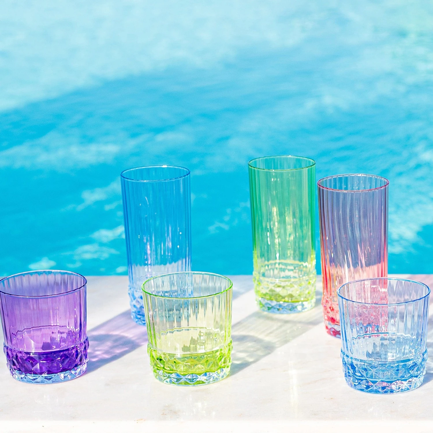 The Deco Assorted Short Tumblers in blue, green, pink, and purple are a fun and punchy way to upgrade your drinkware quickly.