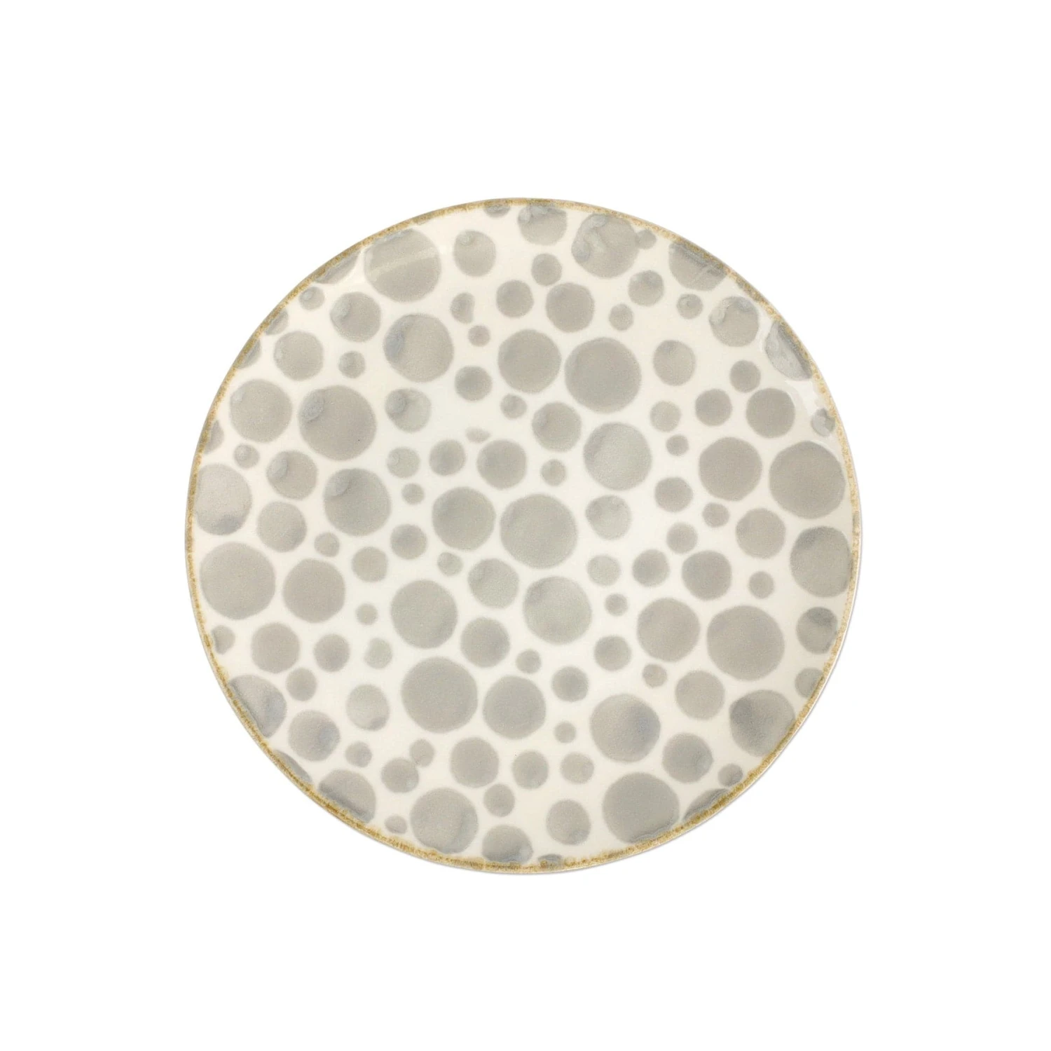 The Earth Bubble Salad Plate combines mid-century neutral tones with an simple silhouette in a playful handpainted pattern.