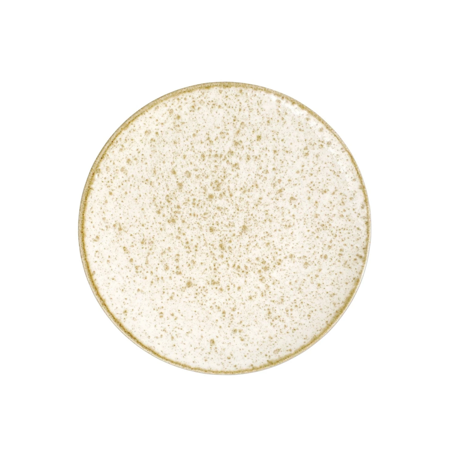 The Earth Eggshell 3-piece Place Setting combines mid-century neutral tones with an simple silhouette in a playful handpainted pattern.