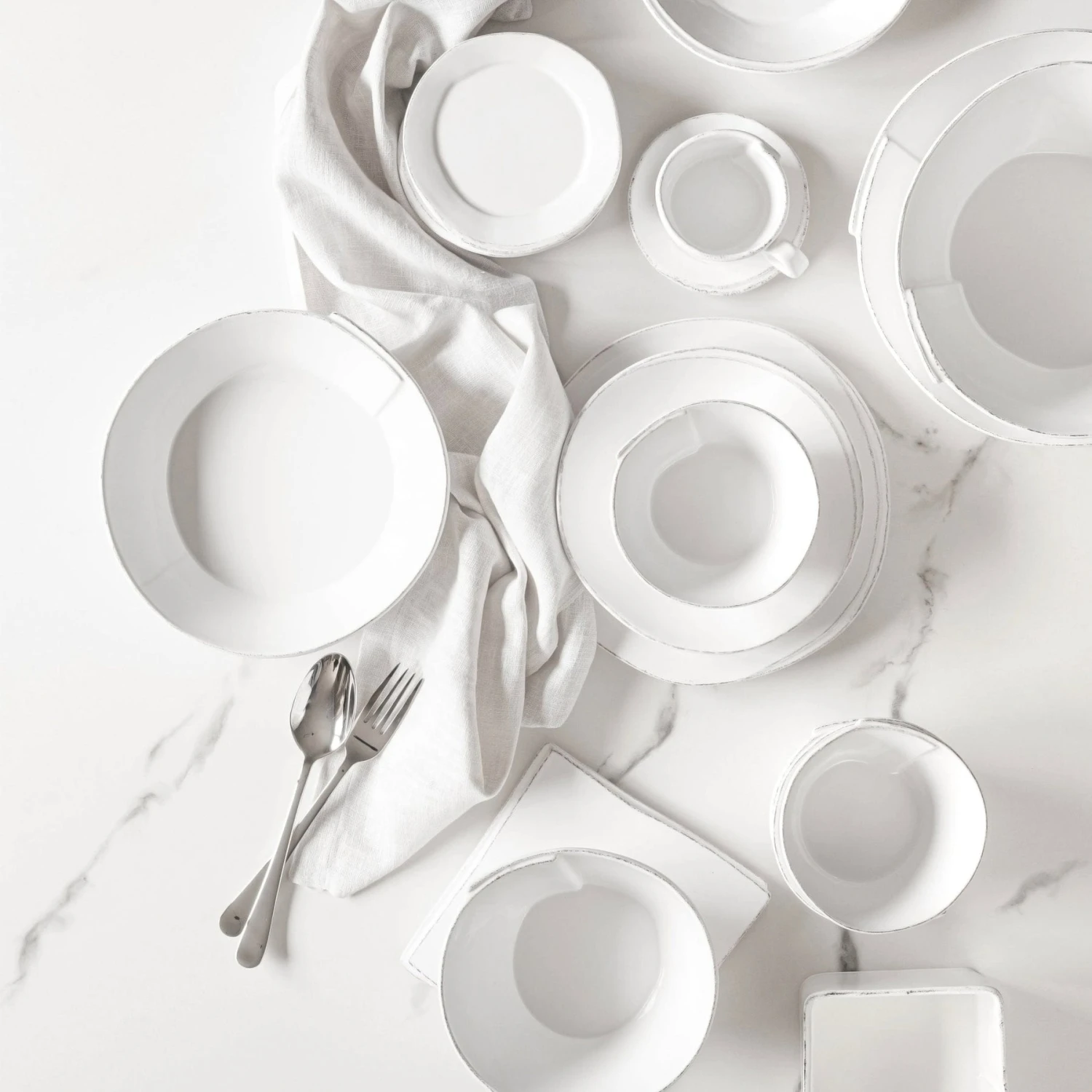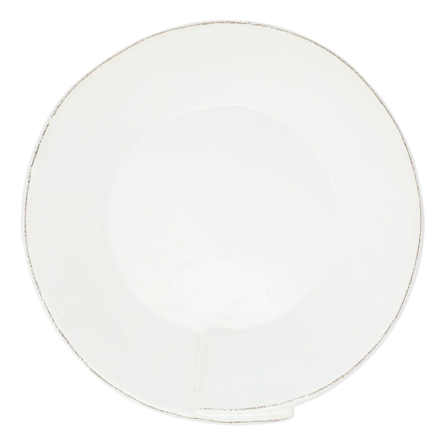 Beloved for its sophisticated simplicity, versatility, and durability, Lastra is our bestselling collection. The understated elegance, clean lines, and unique shape of the Lastra White Large Shallow Serving Bowl make it a timeless choice for your table. Lastra’s design was inspired by the circular wooden slabs used for centuries to create the outer mold in cheesemaking throughout Italy. When fashioned together with twine, the hoop was left with a slight overlap to help maintain the shape of the cheese mold. Maestro molder Stefano Roselli incorporates the overlapping detail into the entire design, from its foot to its rim. A dark dusting on the edges of each piece suggests the ash that was used to preserve these cheeses and highlights each unique silhouette.