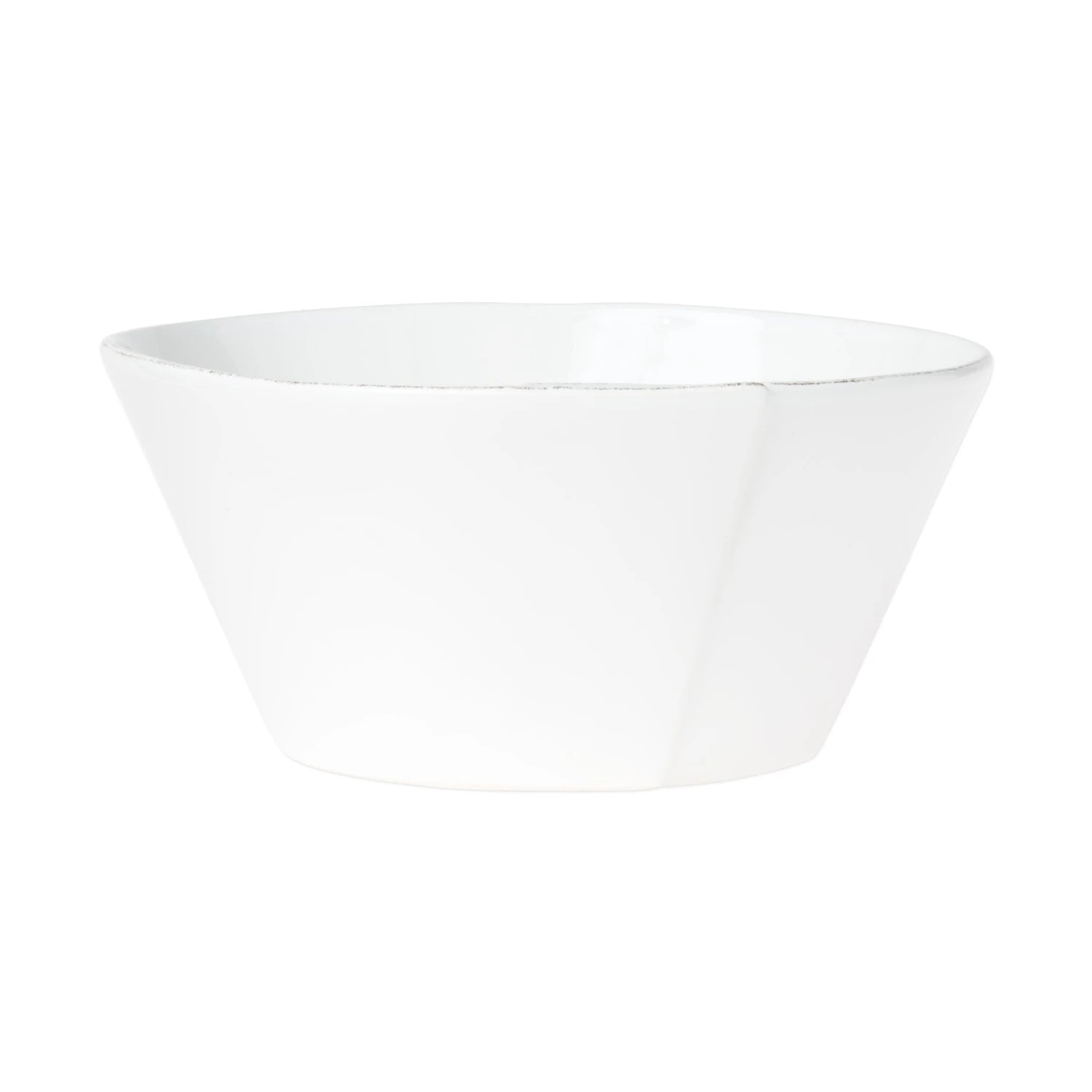 Beloved for its sophisticated simplicity, versatility, and durability, Lastra is our bestselling collection. The understated elegance, clean lines, and unique shape of the Lastra White Large Stacking Serving Bowl make it a timeless choice for your table. Lastra’s design was inspired by the circular wooden slabs used for centuries to create the outer mold in cheesemaking throughout Italy. When fashioned together with twine, the hoop was left with a slight overlap to help maintain the shape of the cheese mold. Maestro molder Stefano Roselli incorporates the overlapping detail into the entire design, from its foot to its rim. A dark dusting on the edges of each piece suggests the ash that was used to preserve these cheeses and highlights each unique silhouette.