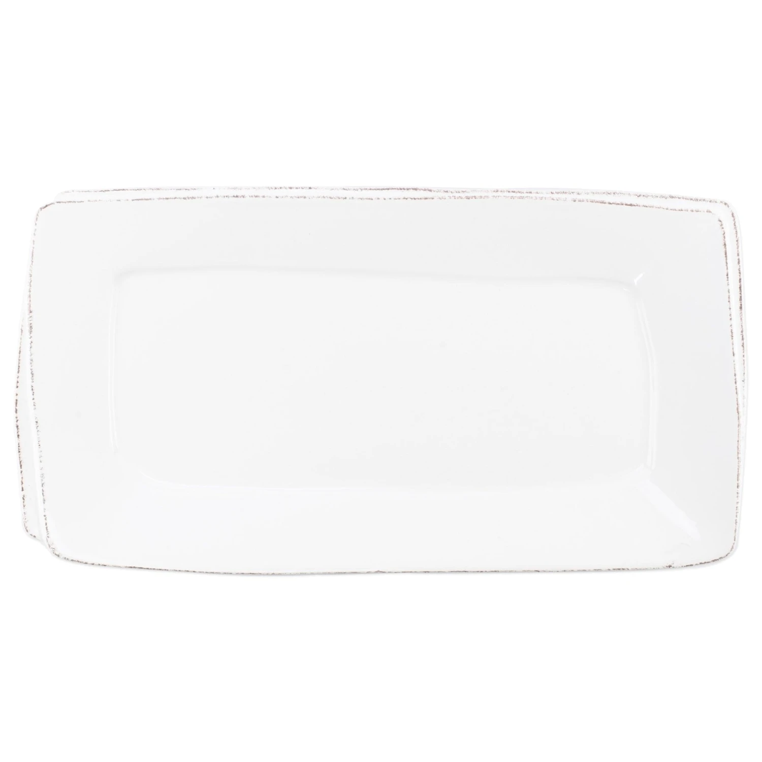 Beloved for its sophisticated simplicity, versatility, and durability, Lastra is our bestselling collection. The understated elegance, clean lines, and unique shape of the Lastra White Rectangular Platter make it a timeless choice for your table. Lastra’s design was inspired by the circular wooden slabs used for centuries to create the outer mold in cheesemaking throughout Italy. When fashioned together with twine, the hoop was left with a slight overlap to help maintain the shape of the cheese mold. Maestro molder Stefano Roselli incorporates the overlapping detail into the entire design, from its foot to its rim. A dark dusting on the edges of each piece suggests the ash that was used to preserve these cheeses and highlights each unique silhouette.