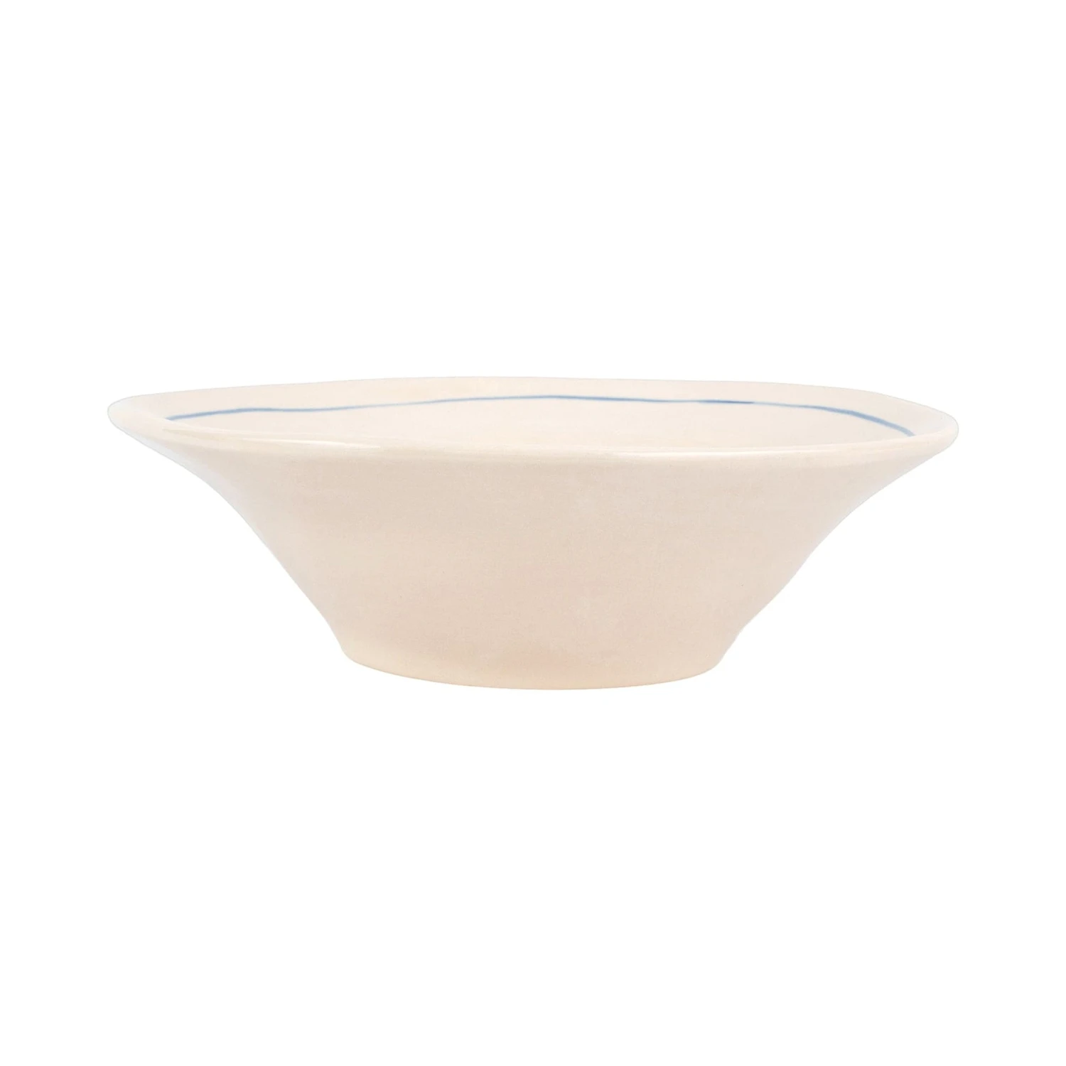 A handpainted Tuscan scene in a perennial favorite shade of light blue adorns the Modello Tuscan Large Serving Bowl.