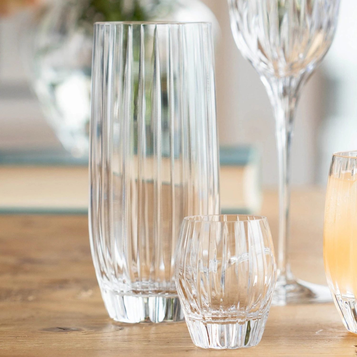 Etched Italian glass and a noteworthy rounded shape make the Natalia High Ball an elegant choice for your next soirée.