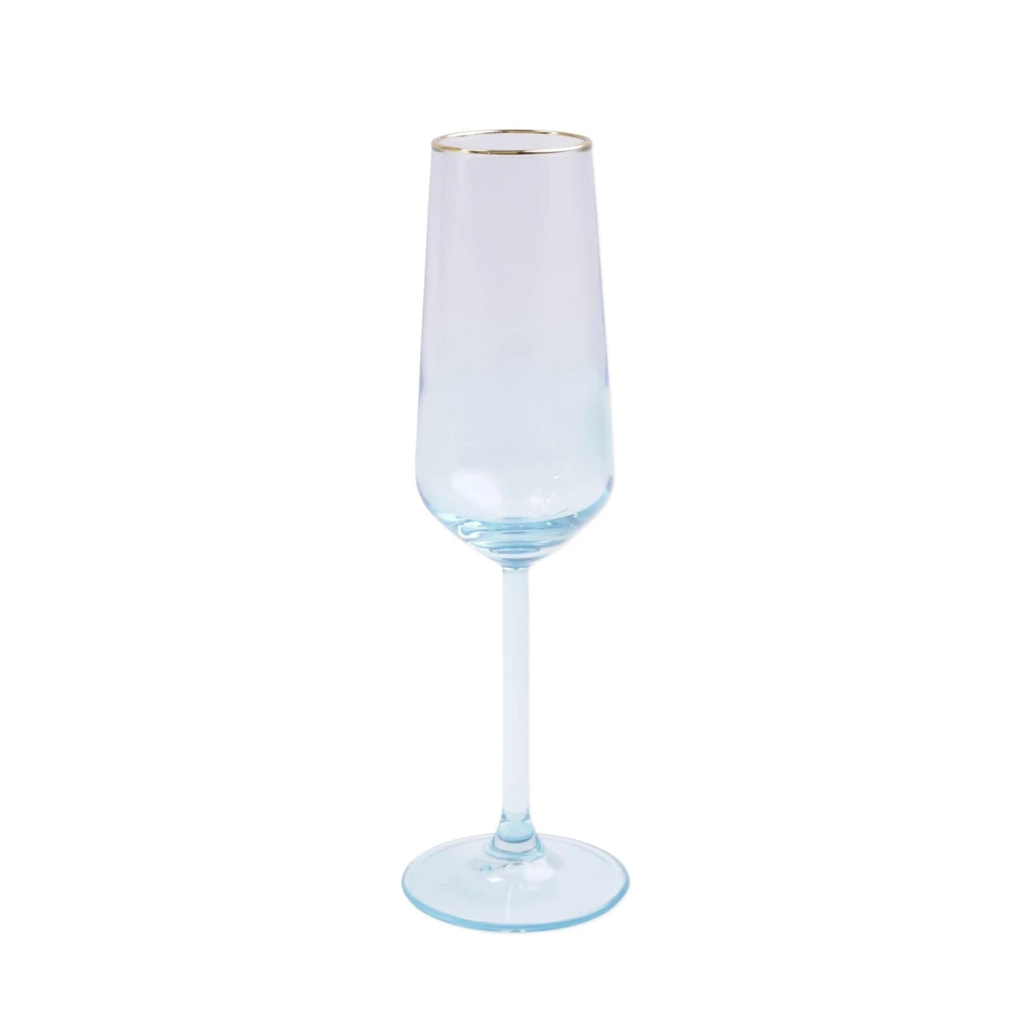 Add sparkle to any setting with a gilded gold rim and varied colored glass that refracts light on the Rainbow Assorted Champagne Flutes – Set of 4.