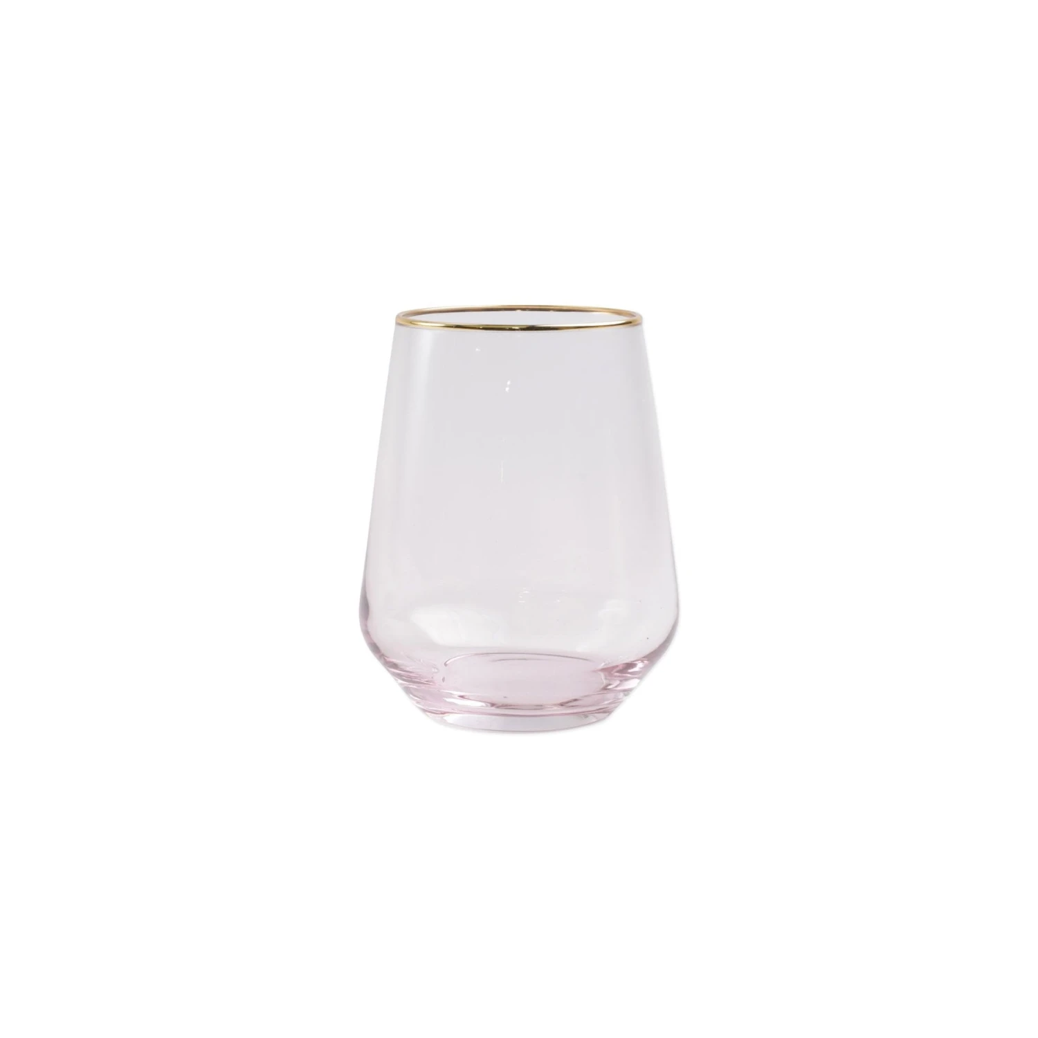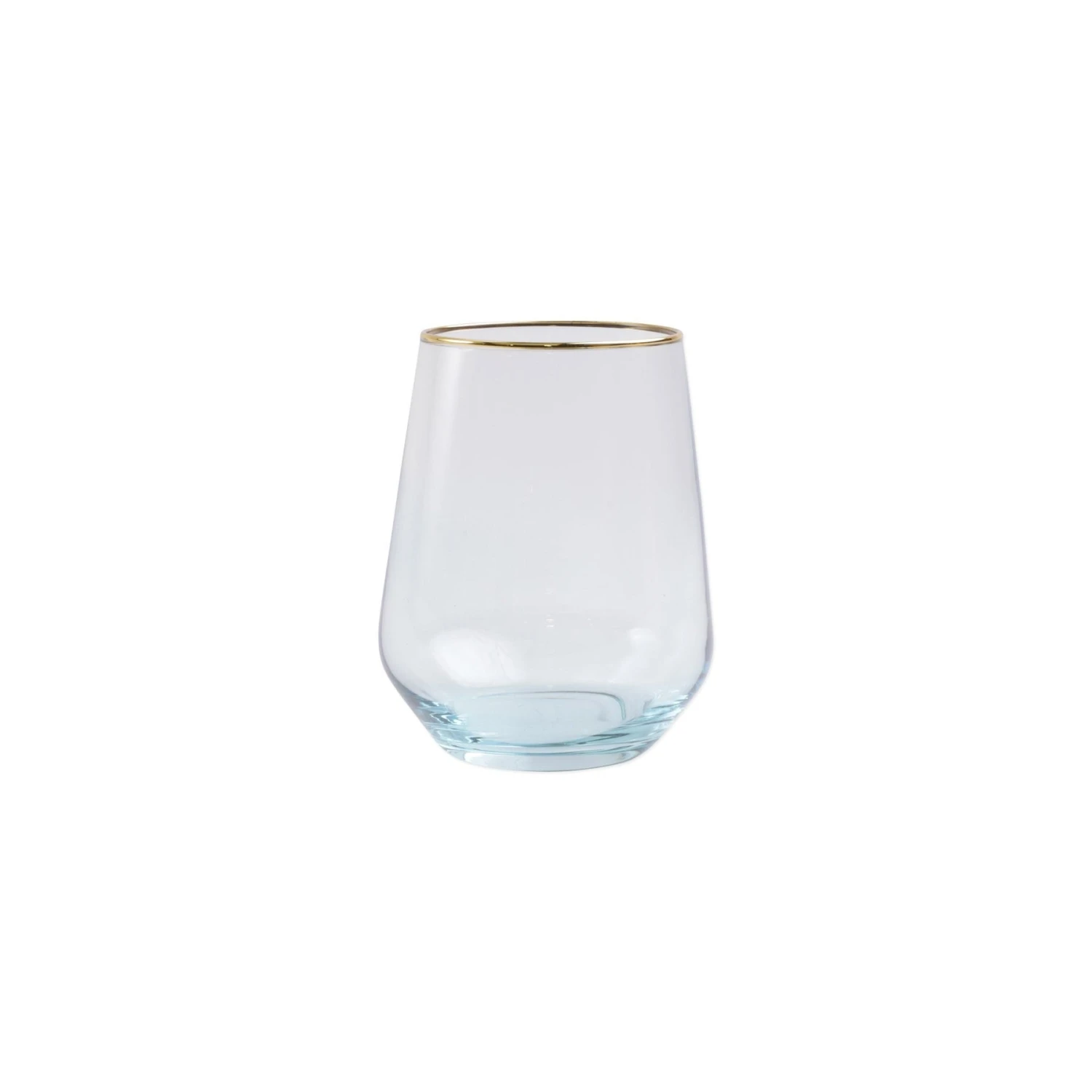Add sparkle to any setting with a gilded gold rim and varied colored glass that refracts light on the Rainbow Assorted Stemless Wine Glasses – Set of 4.