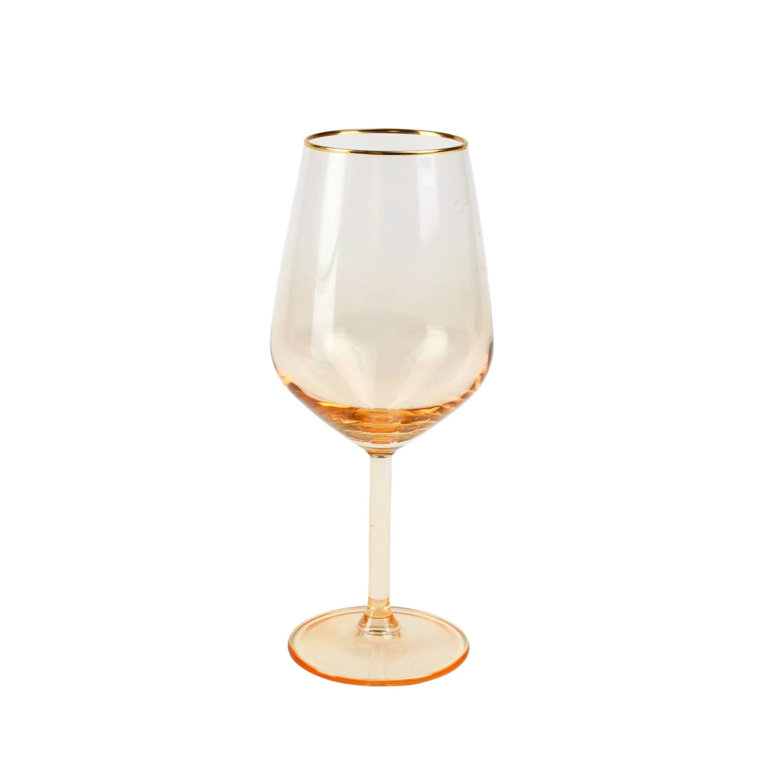 Add sparkle to any setting with a gilded gold rim and varied colored glass that refracts light on the Rainbow Wine Glass.