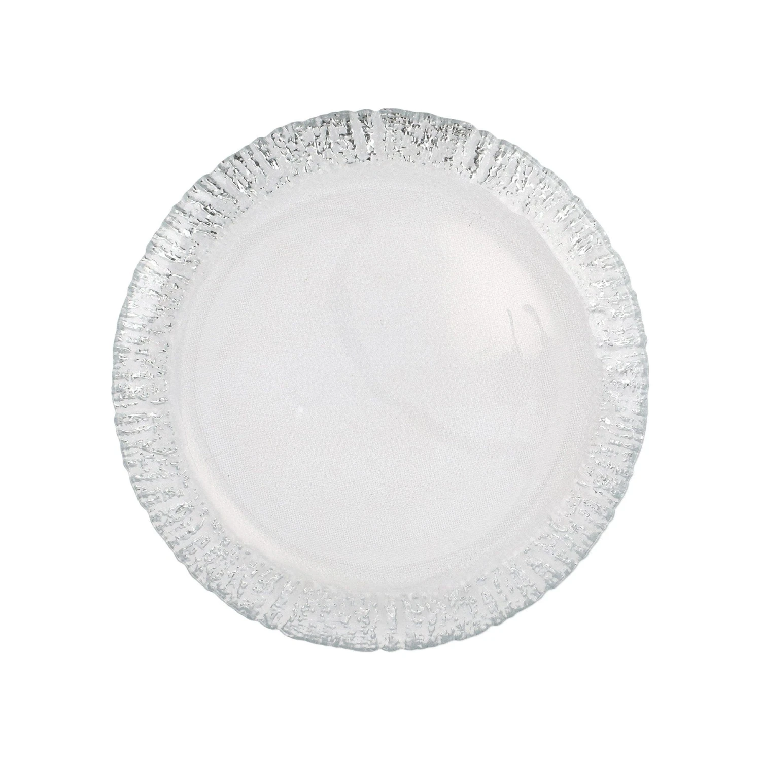 With glowing strands and beautiful texture, the Rufolo Glass Dinner Plate brings luster, glamour, and irresistibly Italian style to your table.