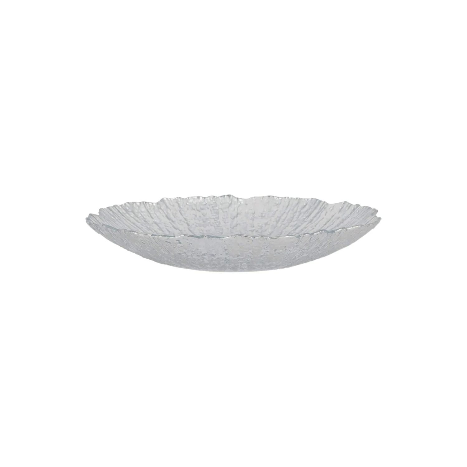 Glowing strands encircle the Rufolo Glass Small Shallow Bowl.