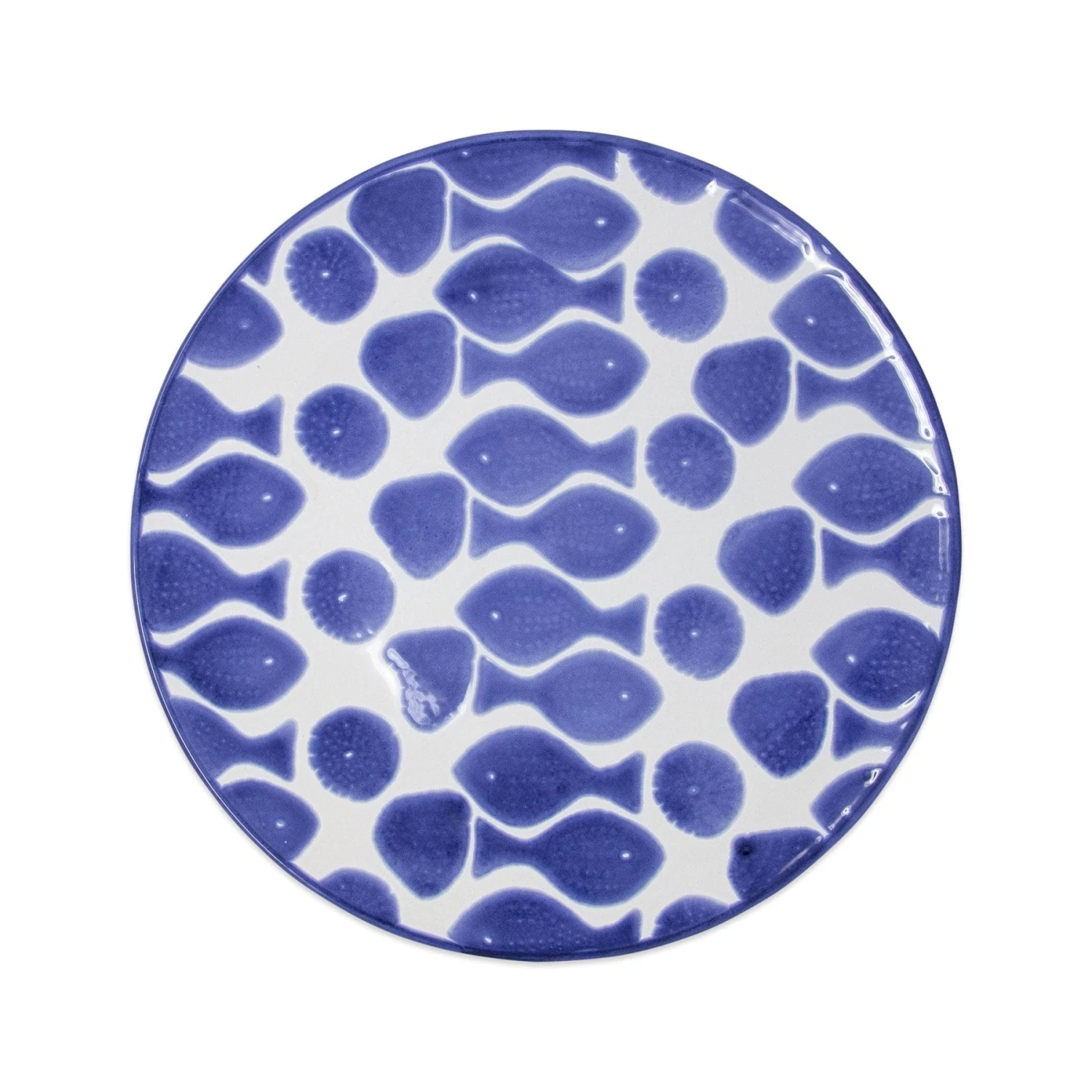 Make everyday entertaining a splash with the playful design of the Santorini Fish Dinner Plate, a perfect mix of blue and white that easily layers with the mosaic patterns of Santorini.