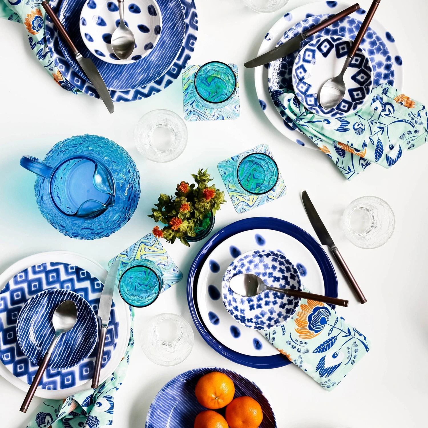 Recreate the beautiful mosaic tiles found in the Greek Isles with the Santorini Stripe Salad Plate, painted on hard ceramic in a fun blue and white pattern.