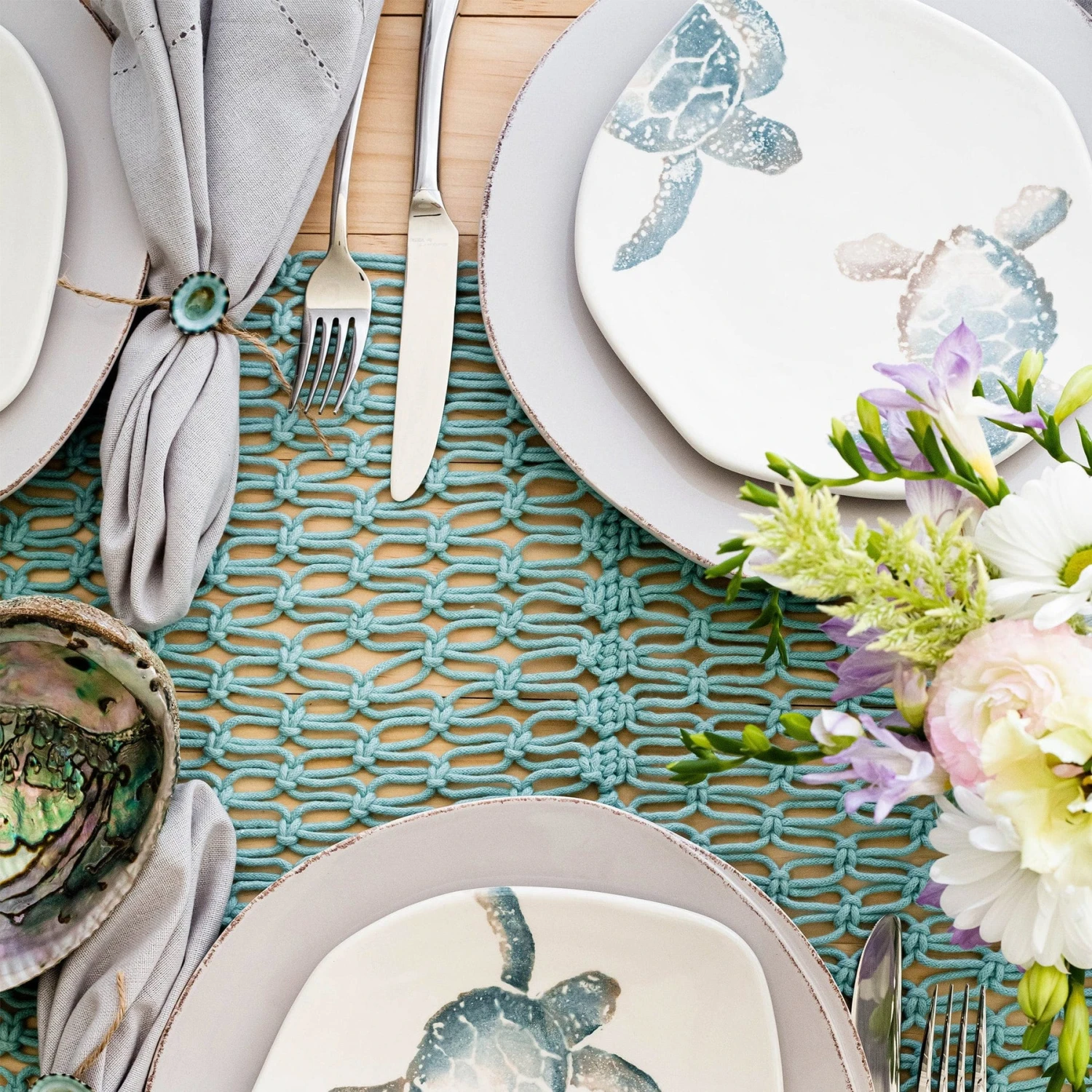 The handpainted sea turtle is rendered in hues of aqua and taupe against a clean, white canvas on the Tartaruga Turtle w/ Body Salad Plate. Maestro artisan, Gianluca Fabbro, utilizes a unique sponging technique to carefully add detail to each piece.